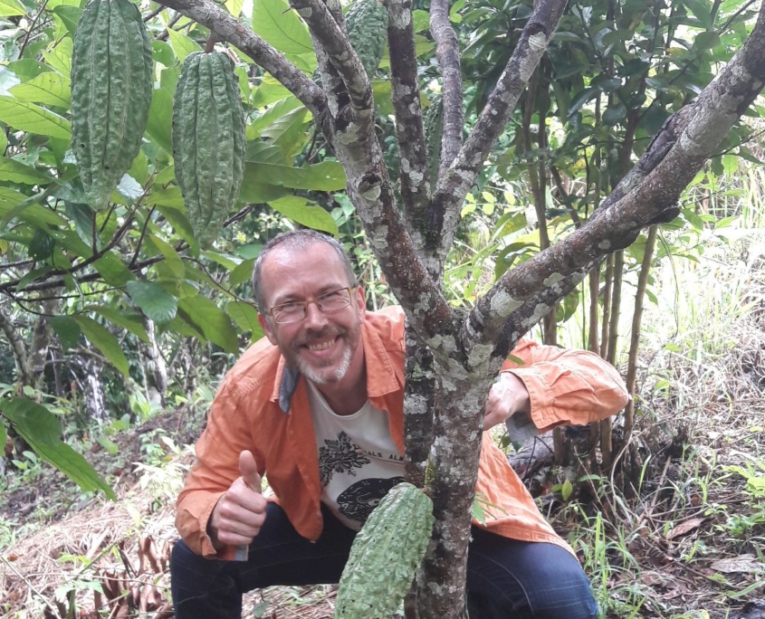 I began writing my own recipes and developed the WATER GANACHE, which has become my speciality, and the focus on flavour brought me to making my own CHOCOLATE from the BEAN. This experience was another huge growth period which in turn took me to the source of my fascination – the Plantation itself!!